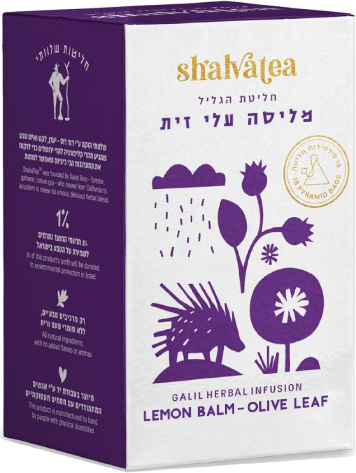 A fragrant blend of lemongrass and lemon balm that’s gentle yet refreshing, together with olive leaf, sage and dandelion that add a rich, full flavor. The aroma brings back scents of springtime herbs and olive groves of the magical Galil region...